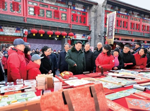 2024年2月1日至2日,中共中央总书记、国家主席、中央军委主席习近平来到天津,看望慰问基层干部群众。这是1日下午,习近平在天津古文化街考察时,同店铺员工和现场群众互动交流。 新华社记者 谢环驰/摄